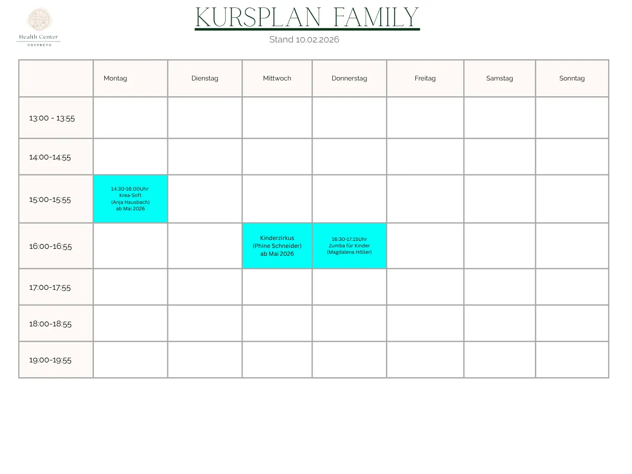 Kinder- und Familienkurse im Health Center Oberberg